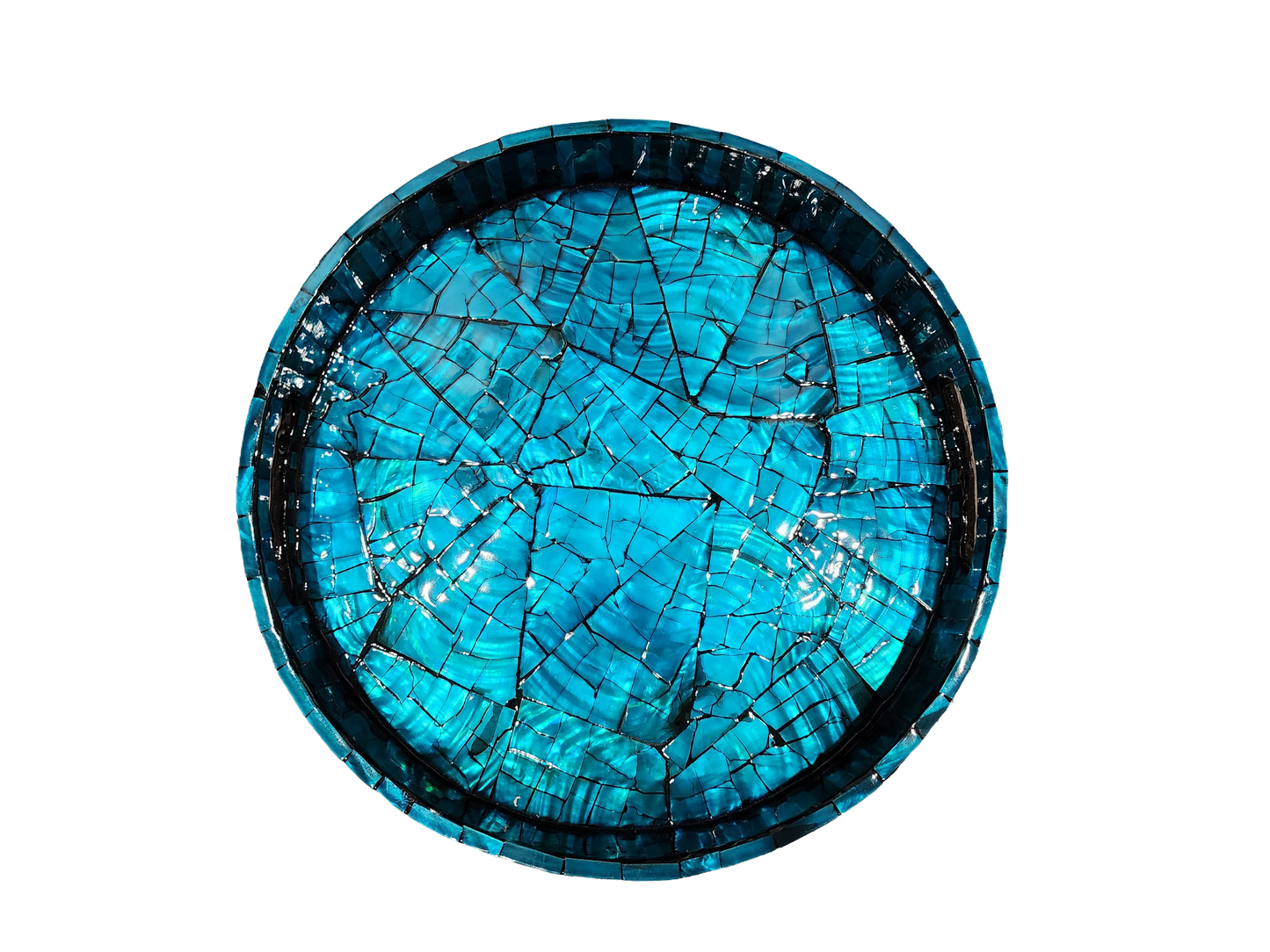 Plateau de pierres précieuses et de nacre fabriqué à la main (bleu)